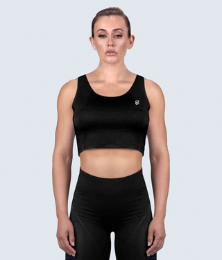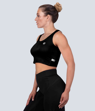 Born Tough Core Black Sheer Crop Running Top for Women