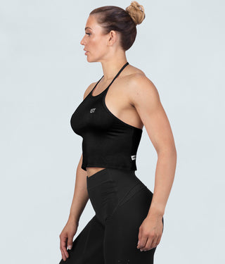 Born Tough Core Black Sheer Halter Running Top for Women
